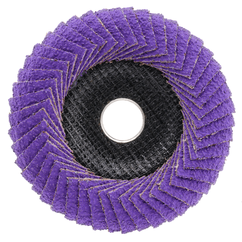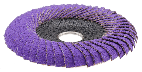 Metalynx MAX Ceramic Angled flap discs offer superior life and grinding speed when grinding fillet welds, T-joints, and other hard-to-reach places. The enhanced abrasive cloth and improved flap configuration provide users with longer product life and greater efficiency, removing up to 40% more material. The 90˚ angled flap design seamlessly conforms to angles while the phenolic backing offers stability to the flaps. This design maximizes flap-to-metal contact, enabling exceptional control and feel during grinding and finishing operations.