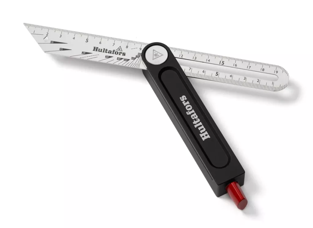 This sliding bevel offers multiple smart features. The 20cm blade includes a durable, laser-etched millimeter scale and angle markings (0-90°) on both sides. The pointed end has a scribing notch, while the other end features a flattened edge, both designed for easy transfer of length measurements with a knife or pencil. The flat edge also includes its own length scale for depth measurements.