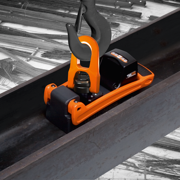 Like all Alfra products, this versatile helper in metal working, on building sites or in shipyards is particularly user-friendly: Activate the TML 250 by means of a practical one-hand operation inside a T-beam and connect the 360° rotating load swivel with your crane, ceiling crane or hoist - for example by means of a hook with safety flap or a load loop.