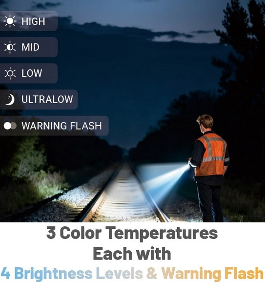 Beam color 3,000K Warm Light (CRI 97), 4,500K Neutral White Light (CRI 83), 6,500K Cool White Light (CRI 73)