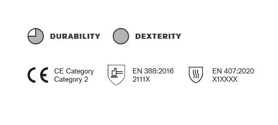 -Thumb crotch reinforcement Contact heat protection level 1 (100°C, EN 407)